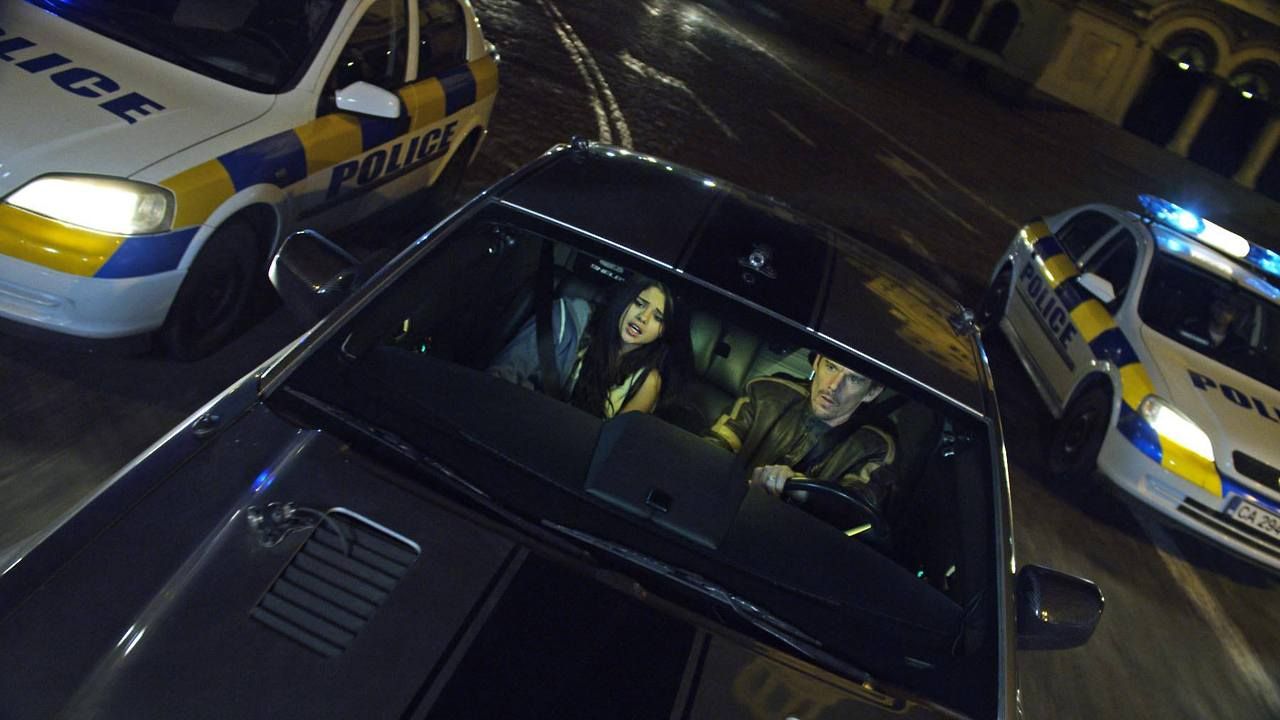 Ethan Hawke, who has mouths to feed at home, plays Brent Magna, a failed race car driver living a quiet life in Bulgaria with his wife. But then she’s kidnapped by a mysterious villain (Jon Voight’s lips) who directs him to a souped-up, armored Shelby with cameras mounted on the inside and out. Over the course of one night, Brent has to drive that car and do everything that Jon Voight’s lips tell him to do, or Jon Voight’s lips will kill his wife.